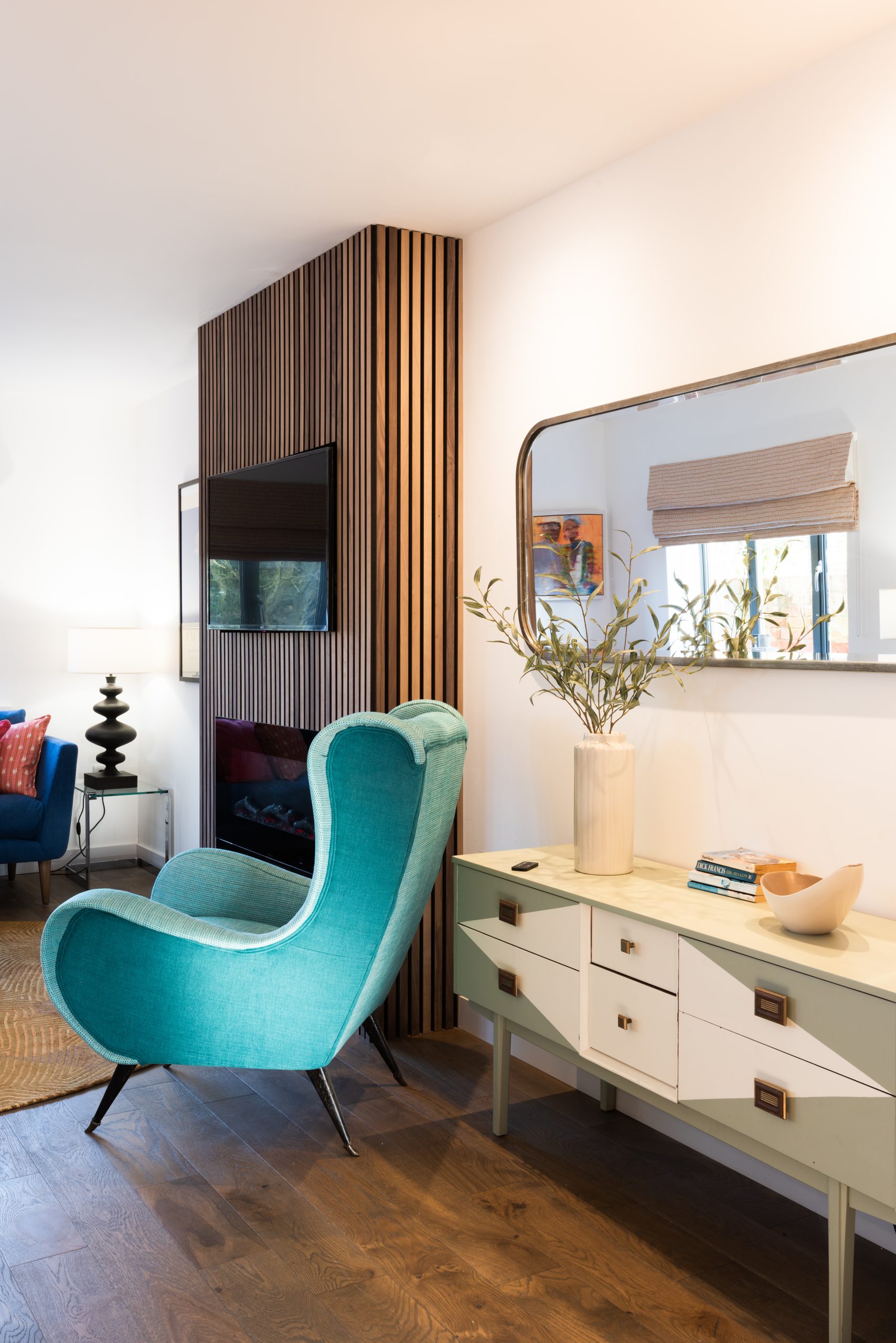 Next, we decided to paint all of the walls and woodwork white to reflect the mid-century era again but to also compliment the vibrant colour scheme already in place. The colours and interiors of a property build its character and, when you come to stay at Penty on the Hoo we’d be more than happy to give further information about any specific piece of furniture or paint colours you fall in love with.